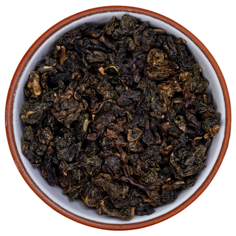 Улун средней степени ферментации характеризуется тёмно-зелёным или зеленовато-коричневым оттенком. Молодые листья, плотно скрученные и обладающие ароматом ржаной корочки, имеют короткие черешки.